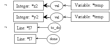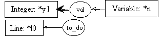 With our representation, input values to a function may be any information relevant to the process achieved by the function. This means that any cg could be used as an input parameter to a function (or process). We need a way to identify how cgs can be exchanged between functions. For that purpose, we define that the input parameters of a function, the cgs expected by a function, will appear in the preconditions of the first transition rule (the one associated with line l0). In our example, rule 0 is the first rule of our process4. Consequently, its precondition will include a cg describing the information that is expected from the calling function. For now, let this cg be the first graph encountered in the precondition of rule 0 (pre0). Coreference links from this graph to any other graph in the process description allows the passing of the appropriate (input) values to other graphs. Hence, the value of the variable n will be called y1 throughout the whole description of the process5.