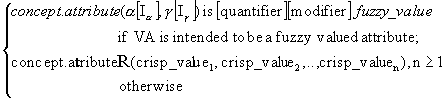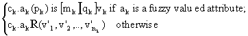 V i represent the value associated to X i . This can be either a crisp value or a fuzzy function;