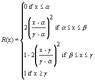 a = 70 and g = 90.Usually, the fuzzy terms to be modelled are adjectives, which can be preceded by fuzzy modifiers such as "very", "not", etc. This problem is addressed in the following example. Let us consider the sentence "the vegetation density is high" where the term "high" is represented by a continuous fuzzy function. Suppose now that the modifier "very" transforms "high" into another continuous fuzzy function so that sentences such as "the vegetation density is very high" are allowed by the system where the expression "the vegetation density" can take values from a fuzzy term denoted as "high". In this situation, the so-called TFM function (Kandel, 1990) has demonstrated to be useful (see, for example, Gisolfi and Di-Lascio (1995)). This function works as follows: