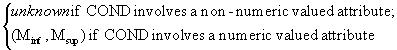 Ti(v) represents the fuzzy membership function valued for v and associated to the ith element of the triple defining the attribute that underlies COND’; i = 1, 2, 3; v