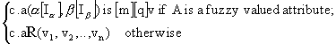 When the condition under question in the input case contains a fuzzy valued attribute, the method proposed here to calculate the membership function value of the rule condition that matches the input case condition can be written as follows: