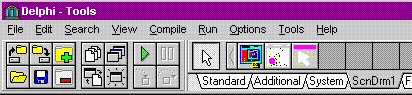 Microsoft Visual C++ has a limited number of tools (relatively speaking) to provide easier development. One of these tools is called App Studio which allows the user to create the GUI by simple drag and drop. This allows the user to bypass all the code writing to create the GUI. (This feature is built-in and integral to Delphi). Another nice feature to Visual C++ is the MFC (Microsoft Foundation Classes) which have pre-written code for re-use. The programmer only calls the functions of the re-usuable code and all the windows and events are taken care of automatically. These is what programmers call reusable objects. The last remarkable feature of Visual C++ is the "App Wizard" which creates all the code and windows for a customized and empty project. All the programmer needs to do is add any windows, and functions. The project will run as normal after using "App Wizard".